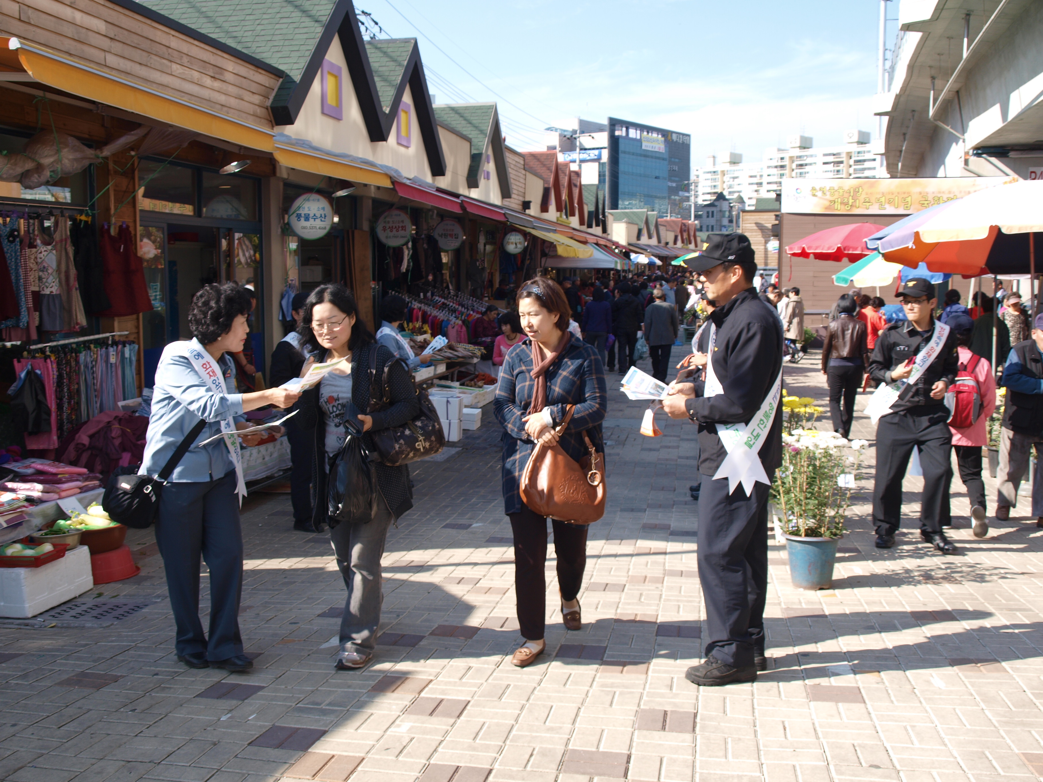 풍물시장에서 불조심 캠페인도 하면서 예쁜국화전도 보고,사진도 찍고 ....