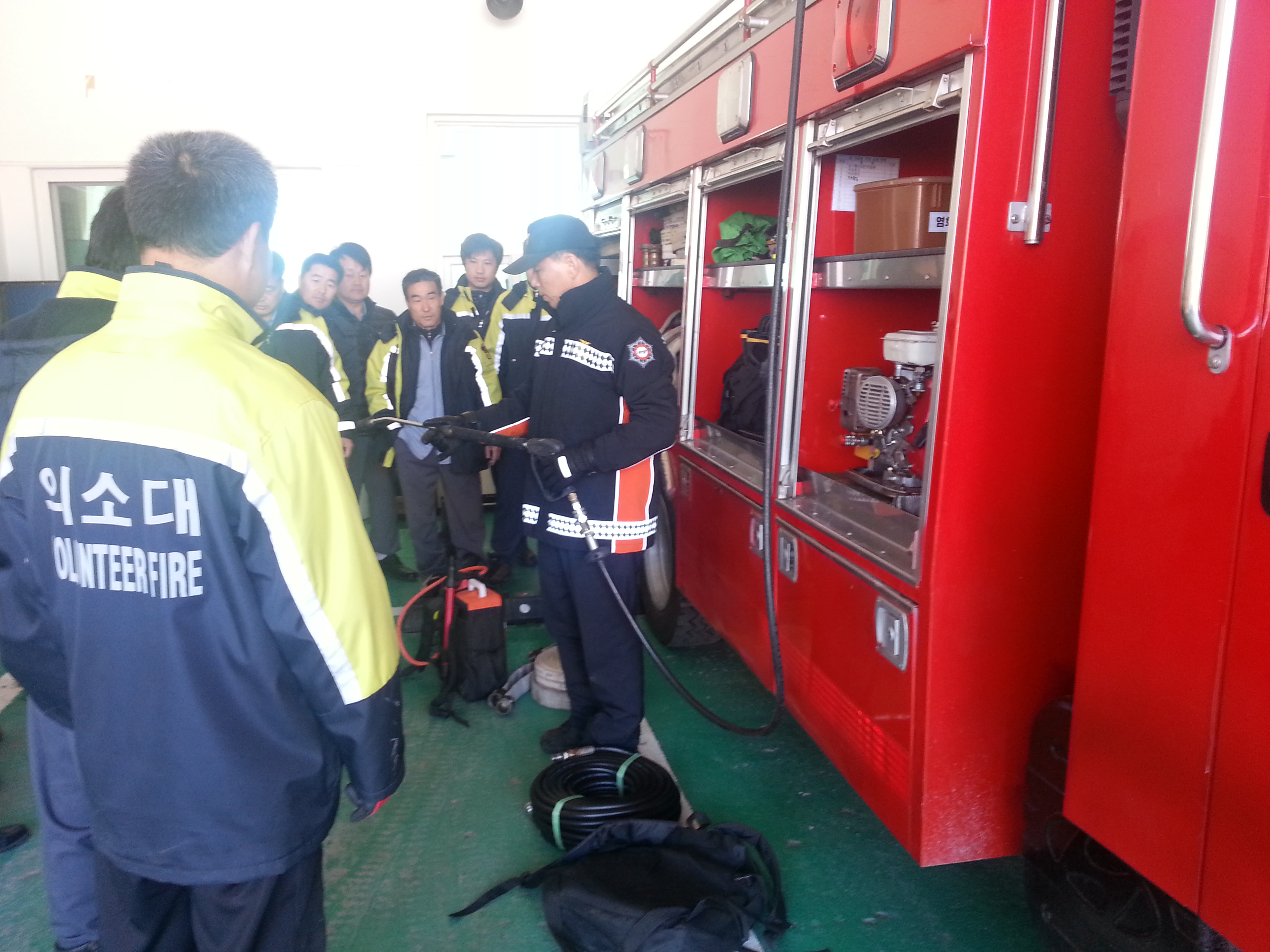 20일 오전 10시에 해안의소대 펌프차량 조작 및 산불진화장비
