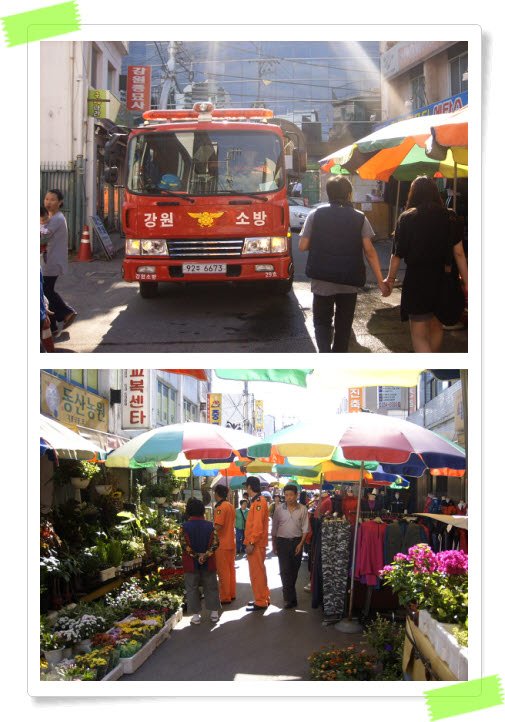 소양119안전센터(센터장 이호석)는 2009년 10월 5일 14:30분 부터 중앙로3가 농협중앙회 강원지역본부 ~ 죽림동 강원종묘사 중앙시장 일대 소방통로확보에 임하였습니다.