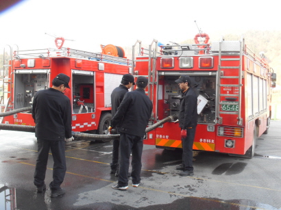 강촌119안전센터(센터장 소방위 송치면)에서는 대형화재시 소방용수 공급의 대비책으로 소화전 직결 흡수관 연결훈련 등을 실시하였습니다.