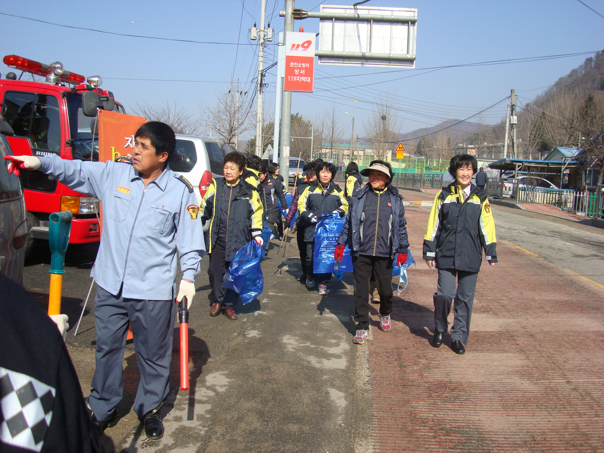 화천119안전센터(센터장 소방경 신상건) 상서119지역대는 상서의용소방대(남,여)와 함께 봄을 맞이하여 지역대에서 상서우체국 일원까지 대청소를 실시하였습니다.