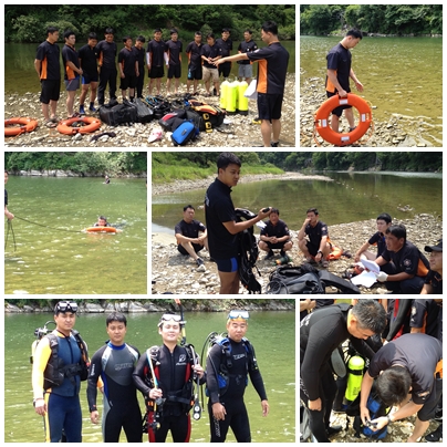 양구119안전센터(센터장 소방경 강경훈)에서는 2012. 6. 25. 양구군 방산면 금악리 금악교 인근 강가에서 수난구조훈련을 실시하였습니다. 센터장 강경훈 외 2팀(팀장 심성용) 14명은 풍수해 및 수난사고 대비 수난구조장비 등 조작 숙달, 기초잠수이론, 수난구조장비(스쿠버) 기본 사용요령, 수난사고 발생 시 요구조자 검색 방법, 상황별 구조훈련 및 응급처치 요령 등 훈련을 실시하였고, 구조활동시 주의사항 등에 대해 토론하는 시간을가졌습니다.
