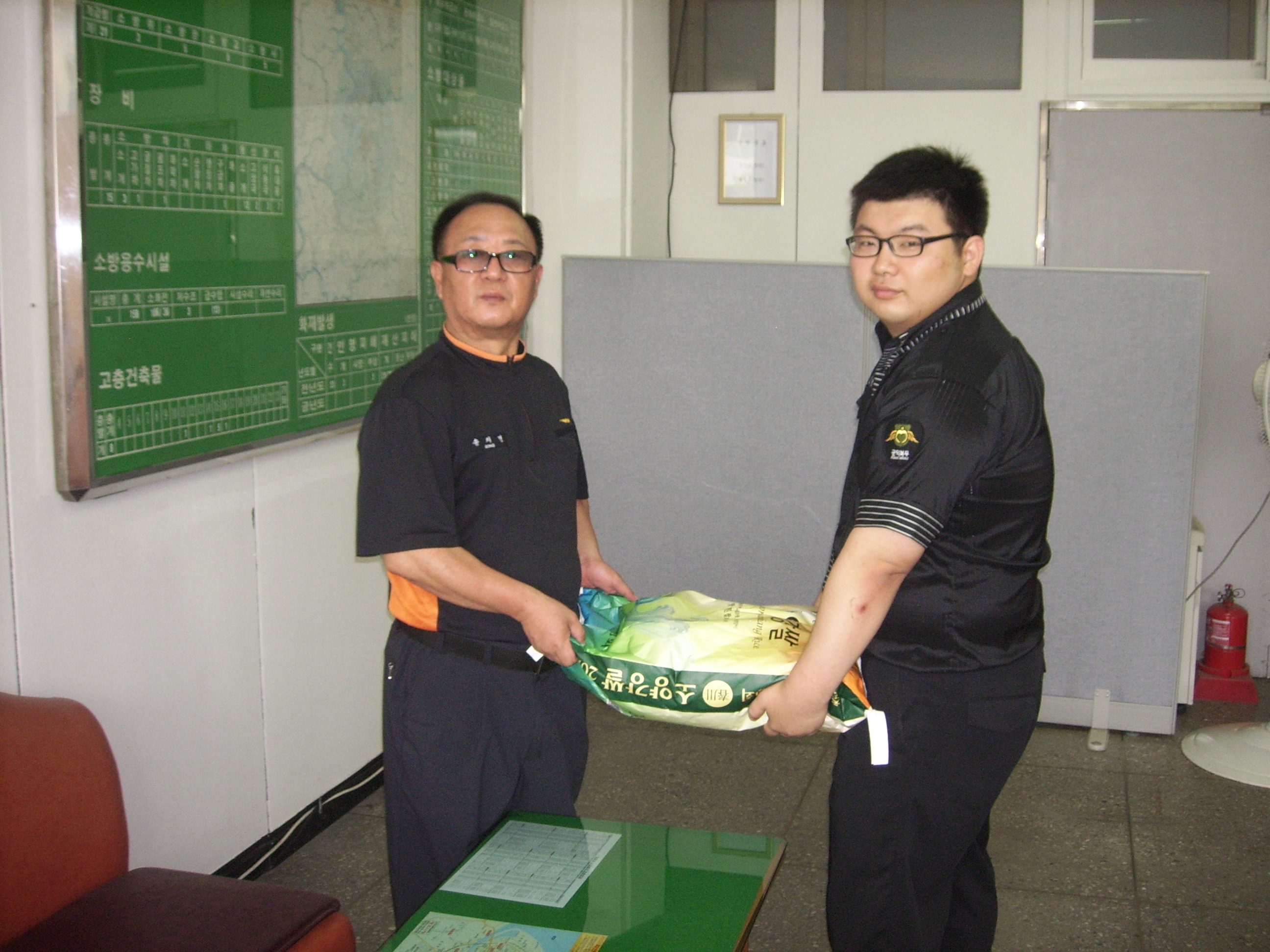 소양119안전센터(센터장 소방위 송치면)에서는 금일 (2012.06.05.) 센터사무실에서 소양안전센터 공익근무요원 권남홍 군에게 사랑나눔회 쌀 전달을 실시하였습니다.