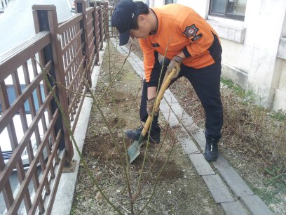 청사 주변을 정리하고 청사 앞 소나무 3그루를 심으면서 직원들의 화합을 도모할 수 있었습니다.