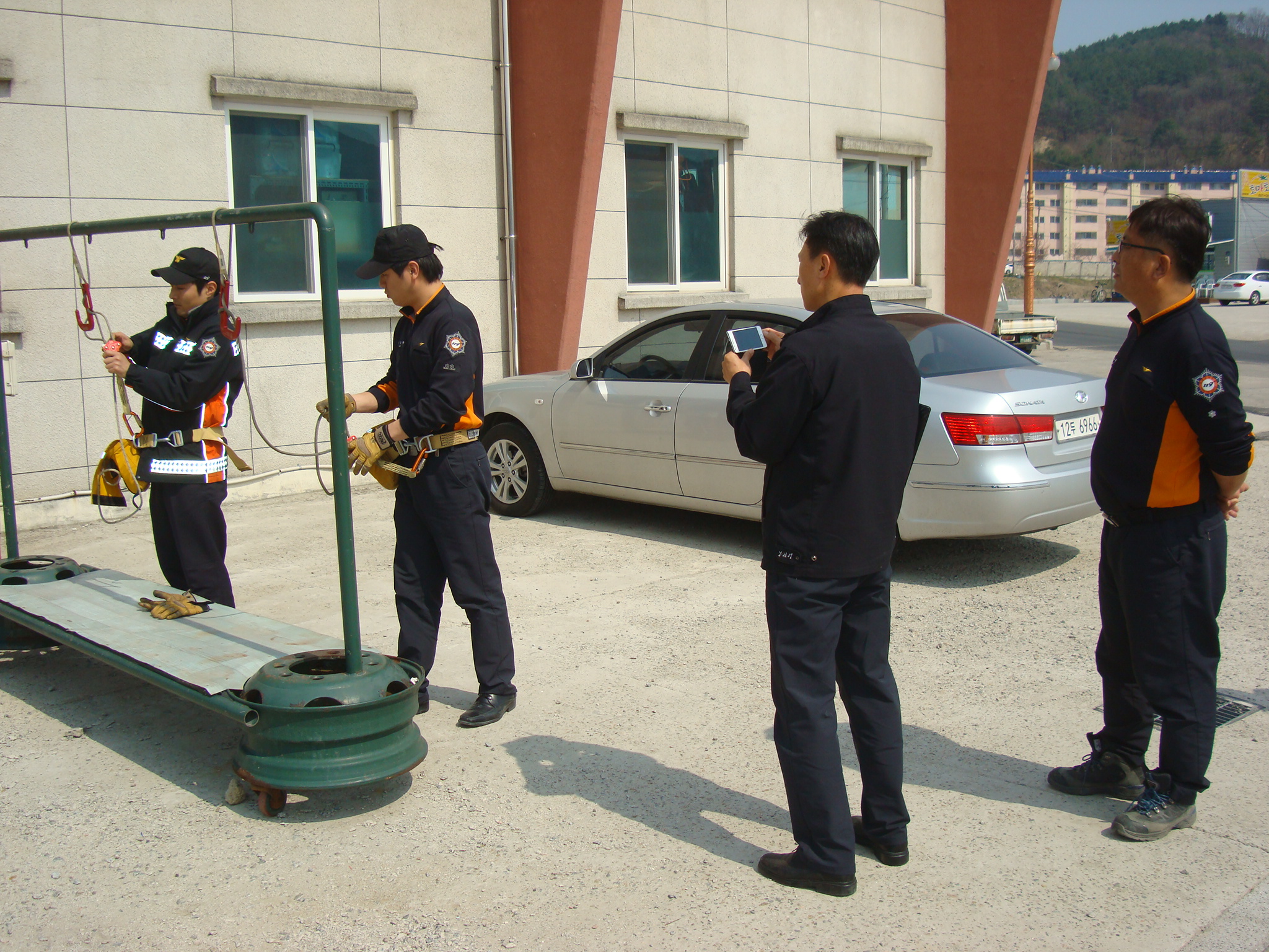 공기호흡기 및 개인로프 등 개인안전장구를 점검하고