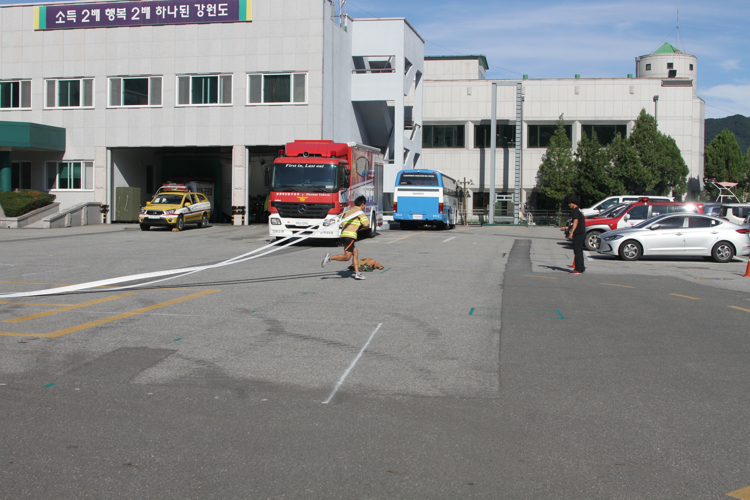 춘천소방서(서장 안중석)는 13일 오후 본서 마당에서 전국대회(10.12~13)에서 우수한 성적을 거두기 위해 땀흘리며 훈련중인 구조분야 선수단을 방문하여 격려하였다.