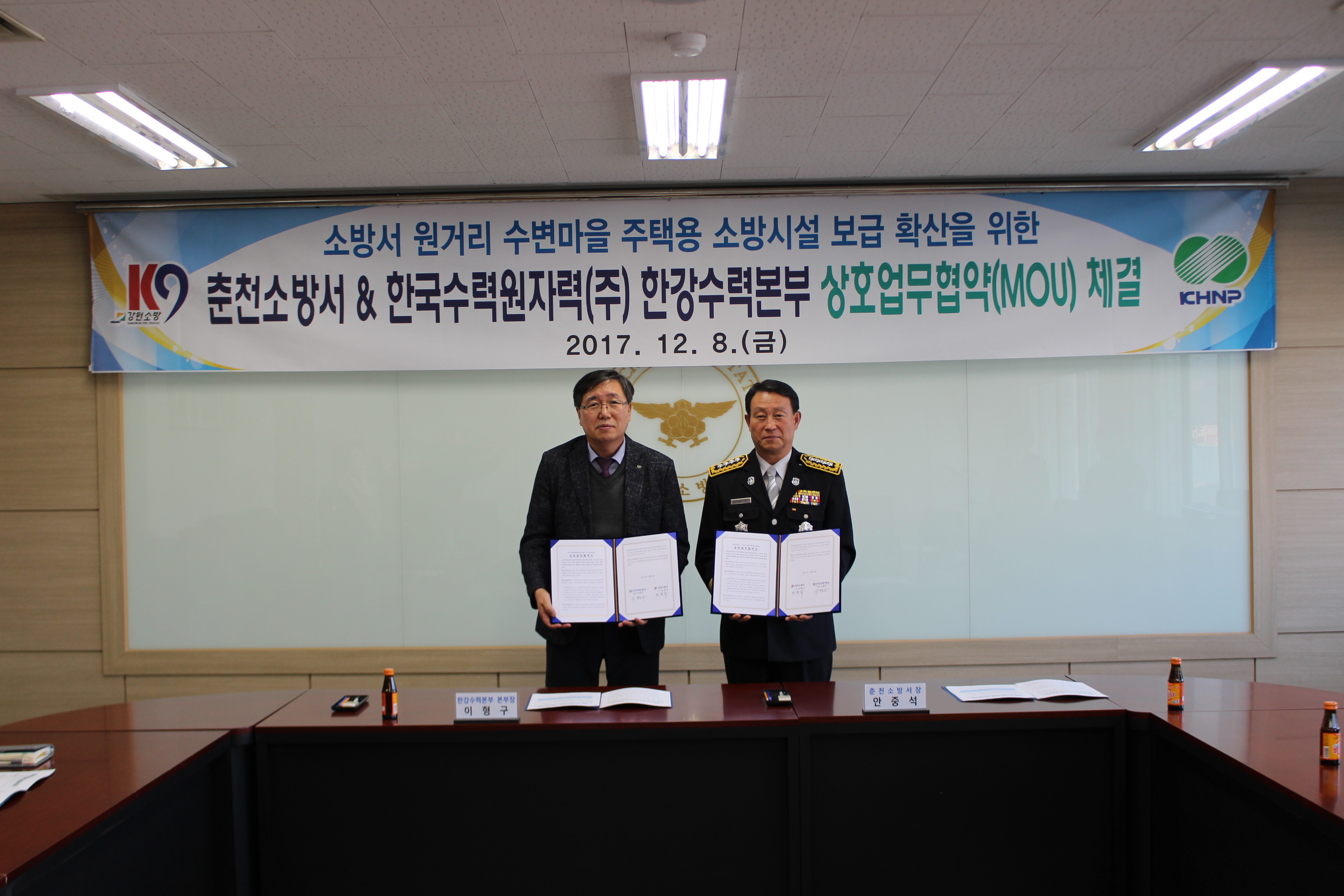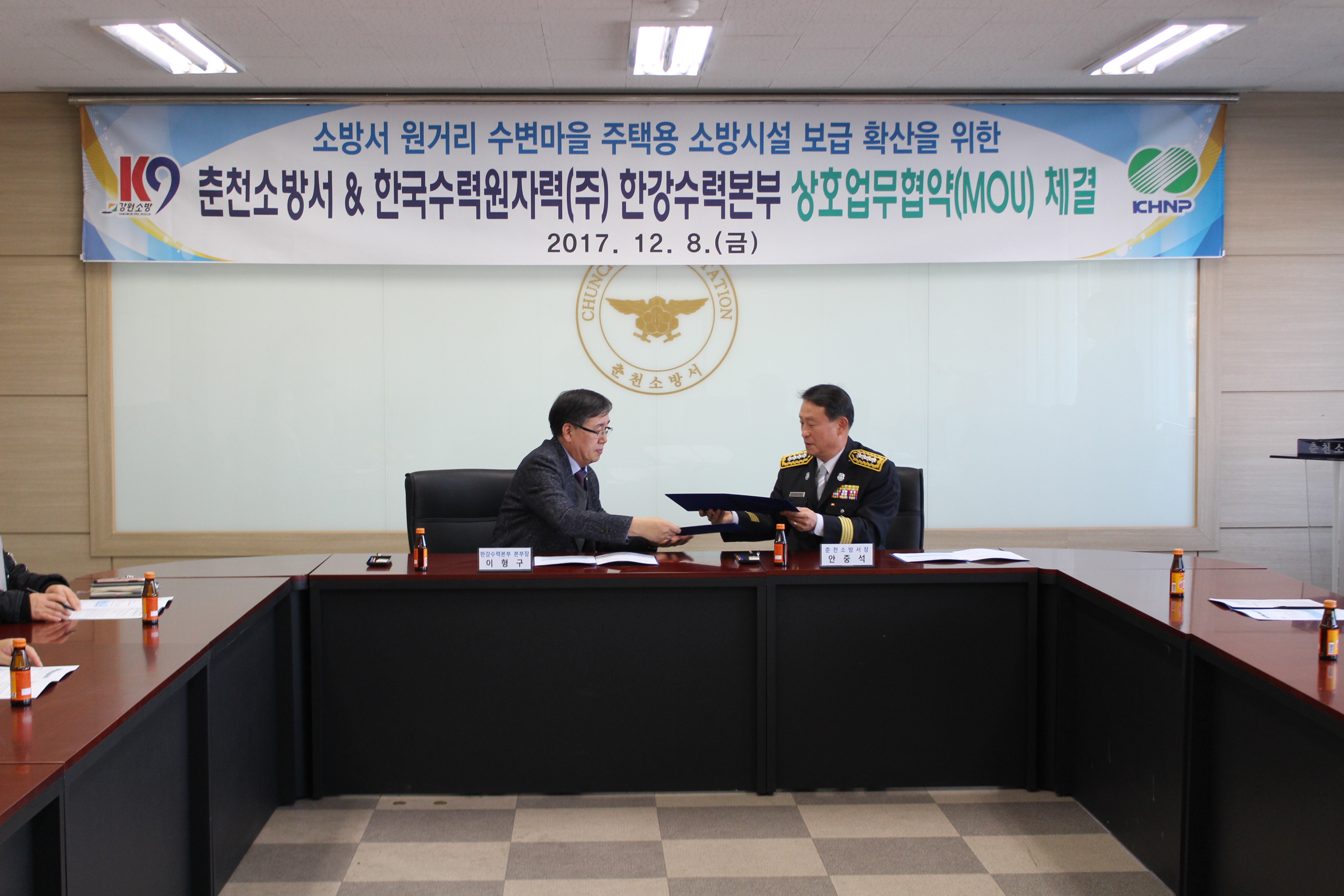 | 3207 | 한국수력원자력(주) 한강수력본부와 업무협약 체결 | 예방계 | 2017-12-08 | 1117 | |