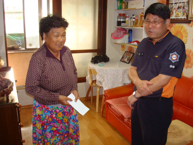 이날 지원대상은 결손 가정 등 불우계층 2명에게 각 가구당 쌀20kg 3포 및 성금 10만원과 단독경보형감지기 2개씩 설치하는 등 불우한 환경속에서 소외된 우리이웃들의 훈훈한 정을 나누는 위문행사를 가졌다.