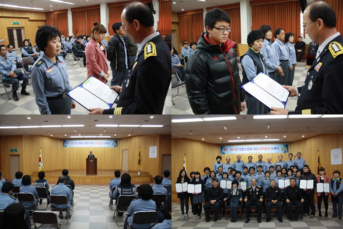 춘천소방서(서장 조완구)는 15일 오전10시 대회의실에서 ‘2011년 상반기 의용소방대 자녀 장학증서 수여행사’를 가졌습니다.