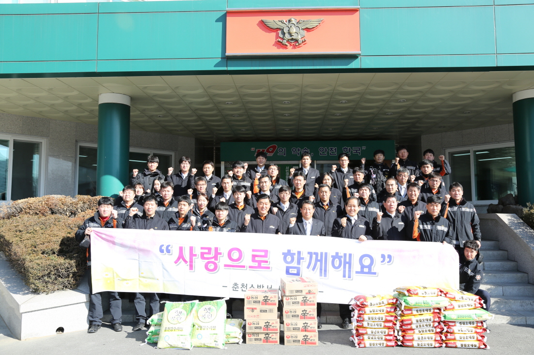 민족 최대의 명절인 설을 맞이하여 자매결연 대상인 「동면 품걸 1리」,「후평7단지 경로당」「조양3리 마을회관」 및 관내 독거노인 등 불우이웃을 차례로 방문, 따뜻한 정과 함께 이웃사랑을 실천하고자 하는 춘천소방서 119사랑나눔회 봉사활동이 시작되었다.