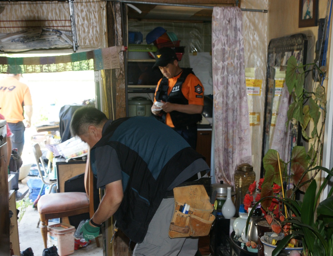 주거환경 개선사업은 화재위험성이 높은 저소득층 가구를 대상으로 화재위험요소를 개선하고 소방시설을 지원하는 사업으로 강원소방이 조성한 119행복기금을 활용하였으며, 관내 주거복지공동체인 새희망건축(대표 임형석)과 함께하였다.