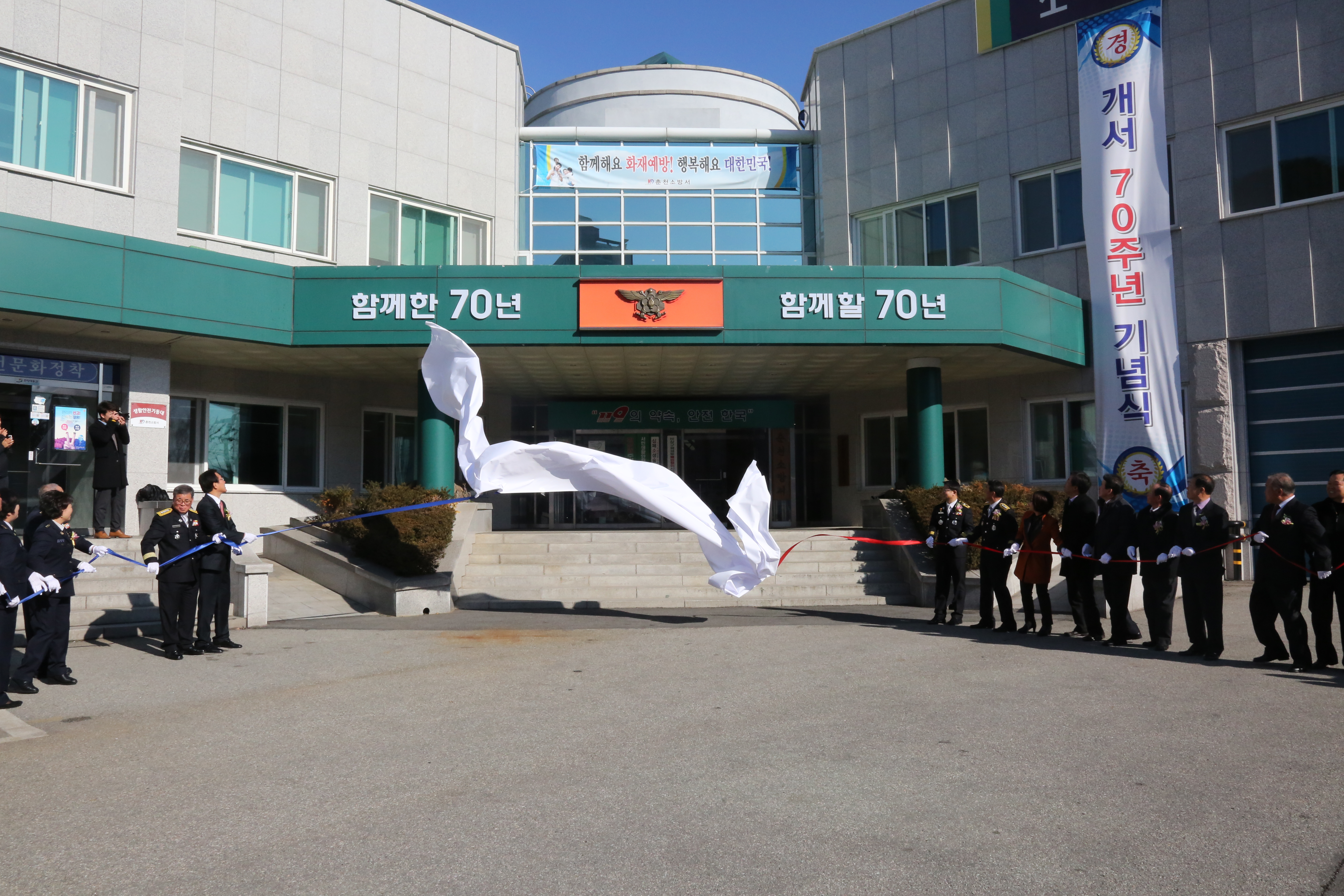 춘천소방서(서장 안중석)는 15일 소방서 본서 대회의실에서 이흥교 강원도 소방본부장, 도의원과 의용소방대원, 선배 소방인 120여 명이 모여 개서 70주년 기념행사를 가졌다.