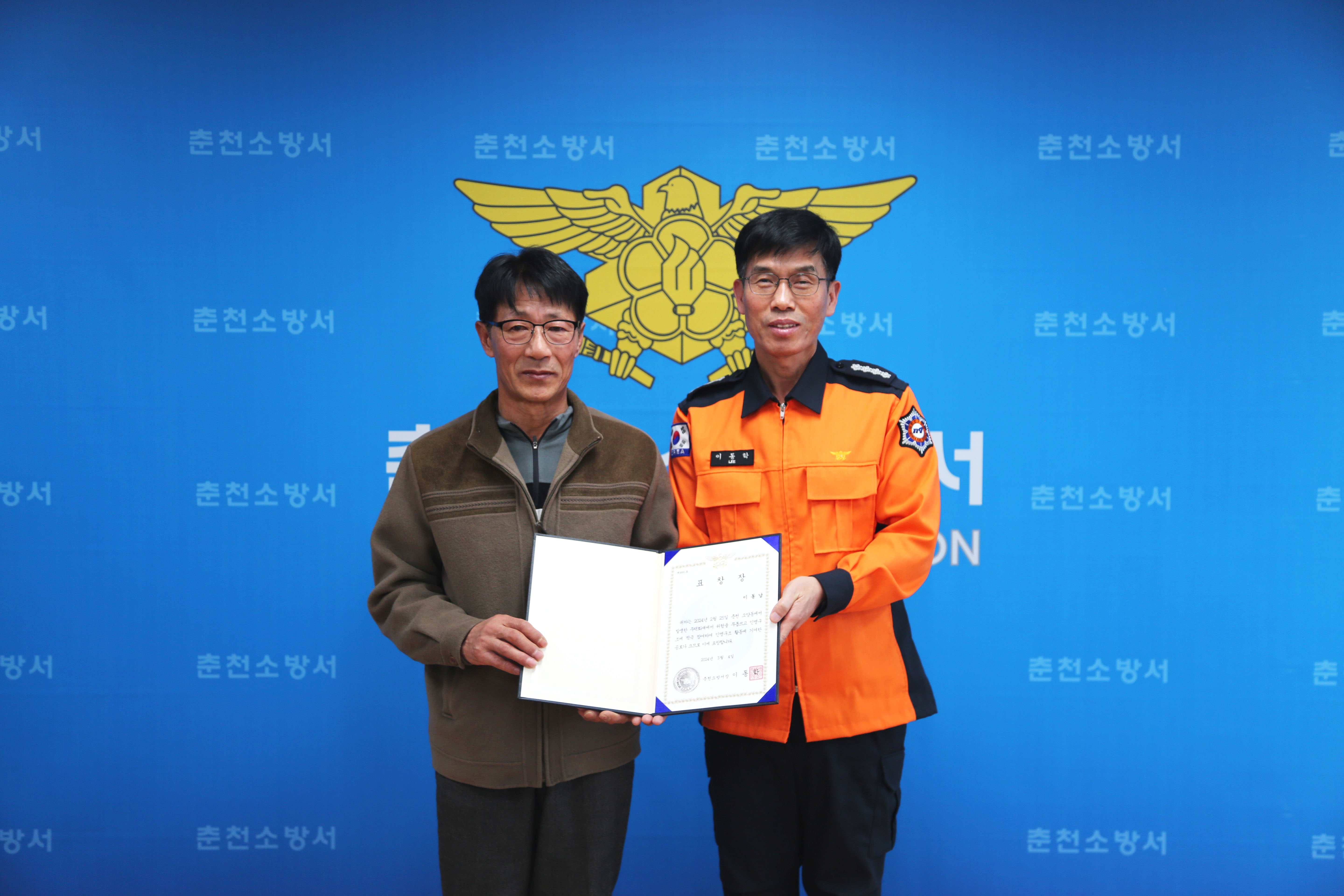 춘천소방서, 화재진압 유공자에 표창 수여