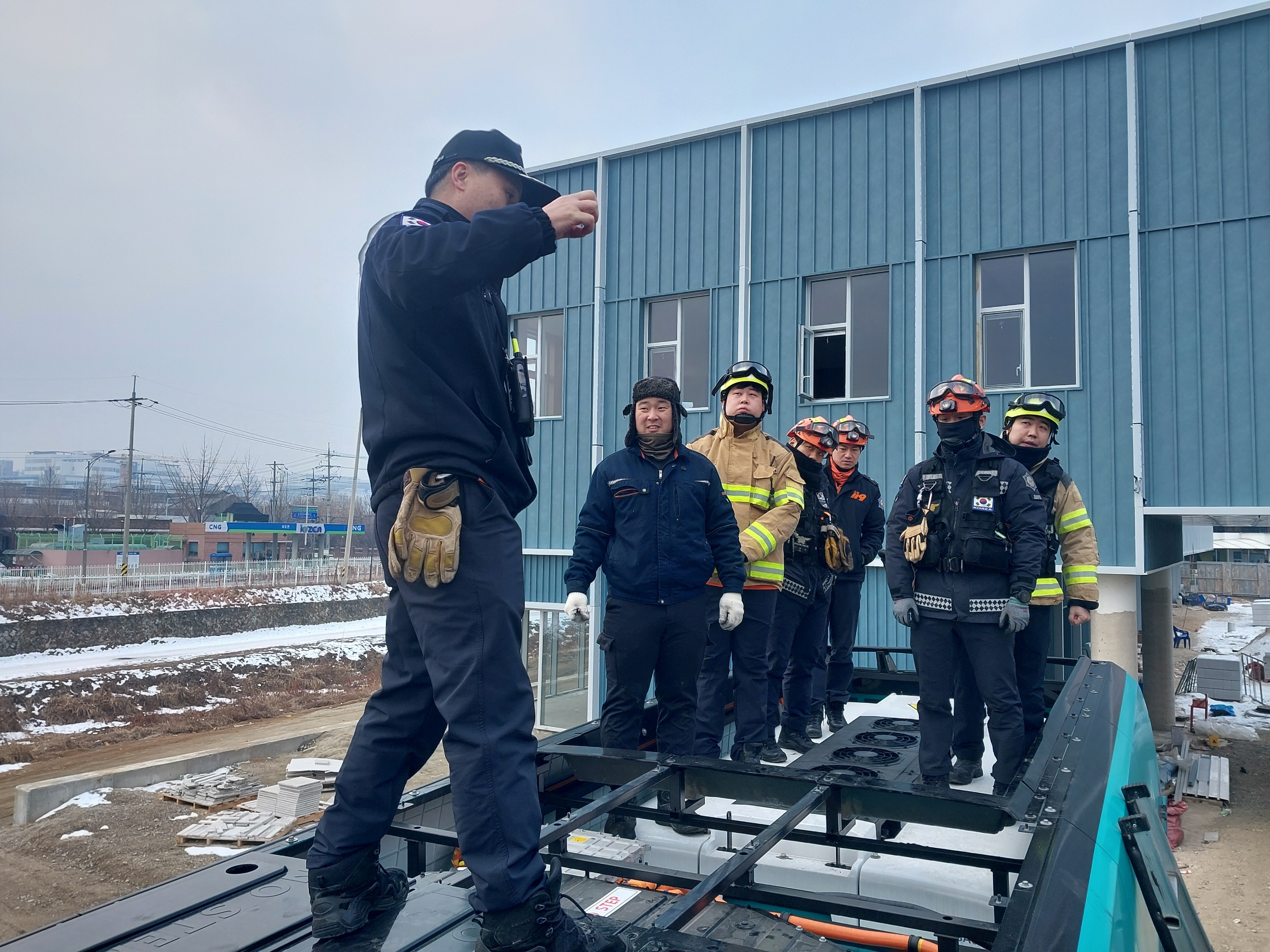 훈련 내용으로는 ▲전기버스 제원 및 배터리 위치도 파악 ▲차량열쇠 위치 확인 및 이동 실습 ▲충전시설 현황 파악 ▲전기버스 충전기 이탈 방법 확인 ▲전기버스 초기 화재진압 작전 ▲연소확대 방지 방법 숙지 등이 있다.