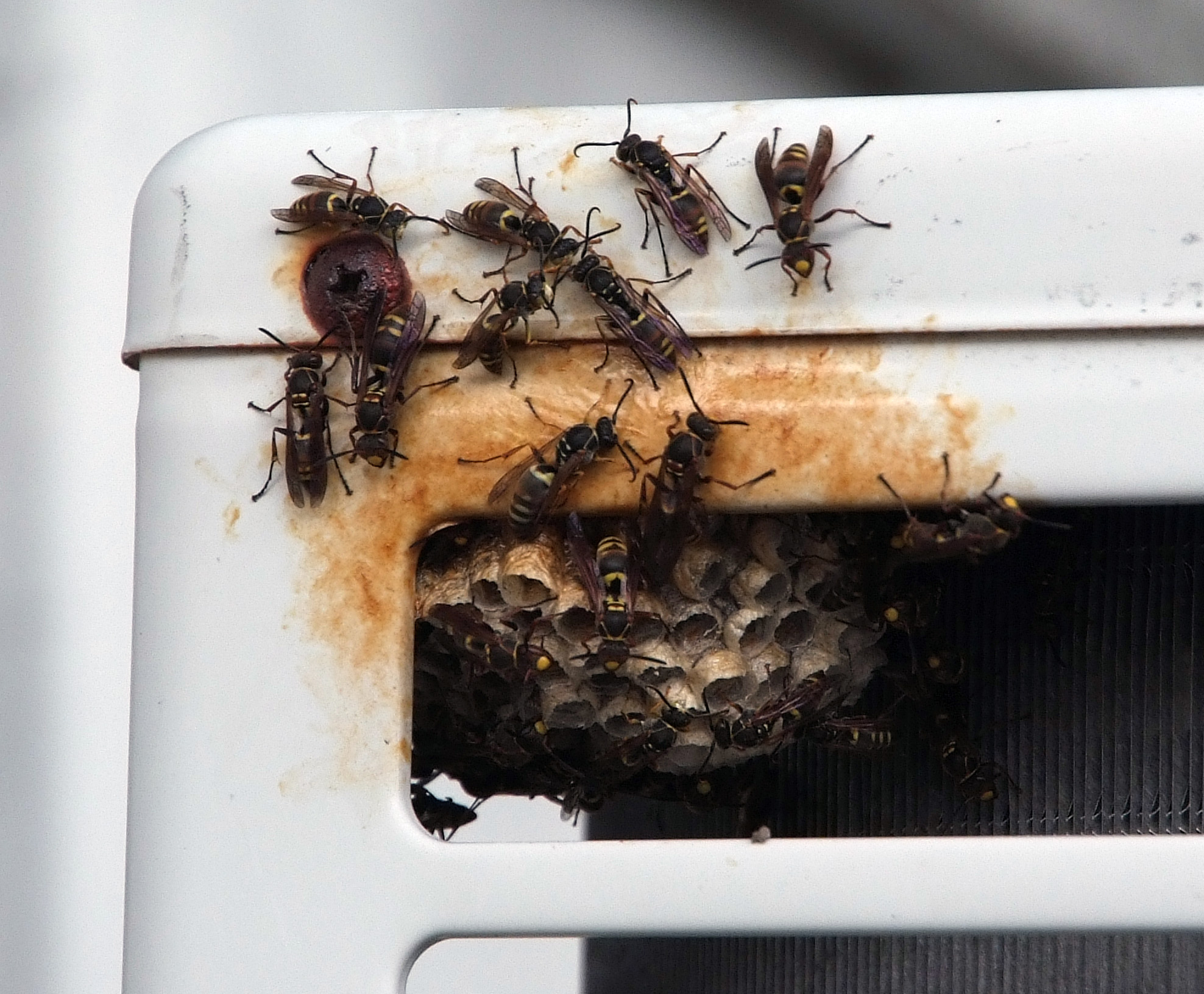 옥상 에어콘 실외기에 이넘들이 둥지를 틀었습니다.