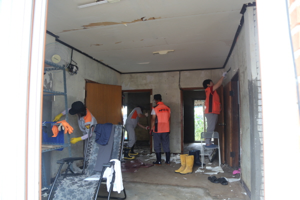 남성의용소방대는 벽돌과 쓰러진 나무를 제거하고 침수된 가옥과 도로 토사를 청소한다. 여성의용소방대는 식기류와 기타 가전, 집기류 등의 세척에 힘쓰고 있다.