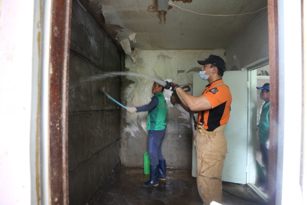 소방대원들은 급수 지원, 침수 가옥과 도로 청소ㆍ세척 작업에, 의용소방대원은 식기류 세척과 세탁물 처리, 부서진 잔해 정리 등의 활동에 참여했다.