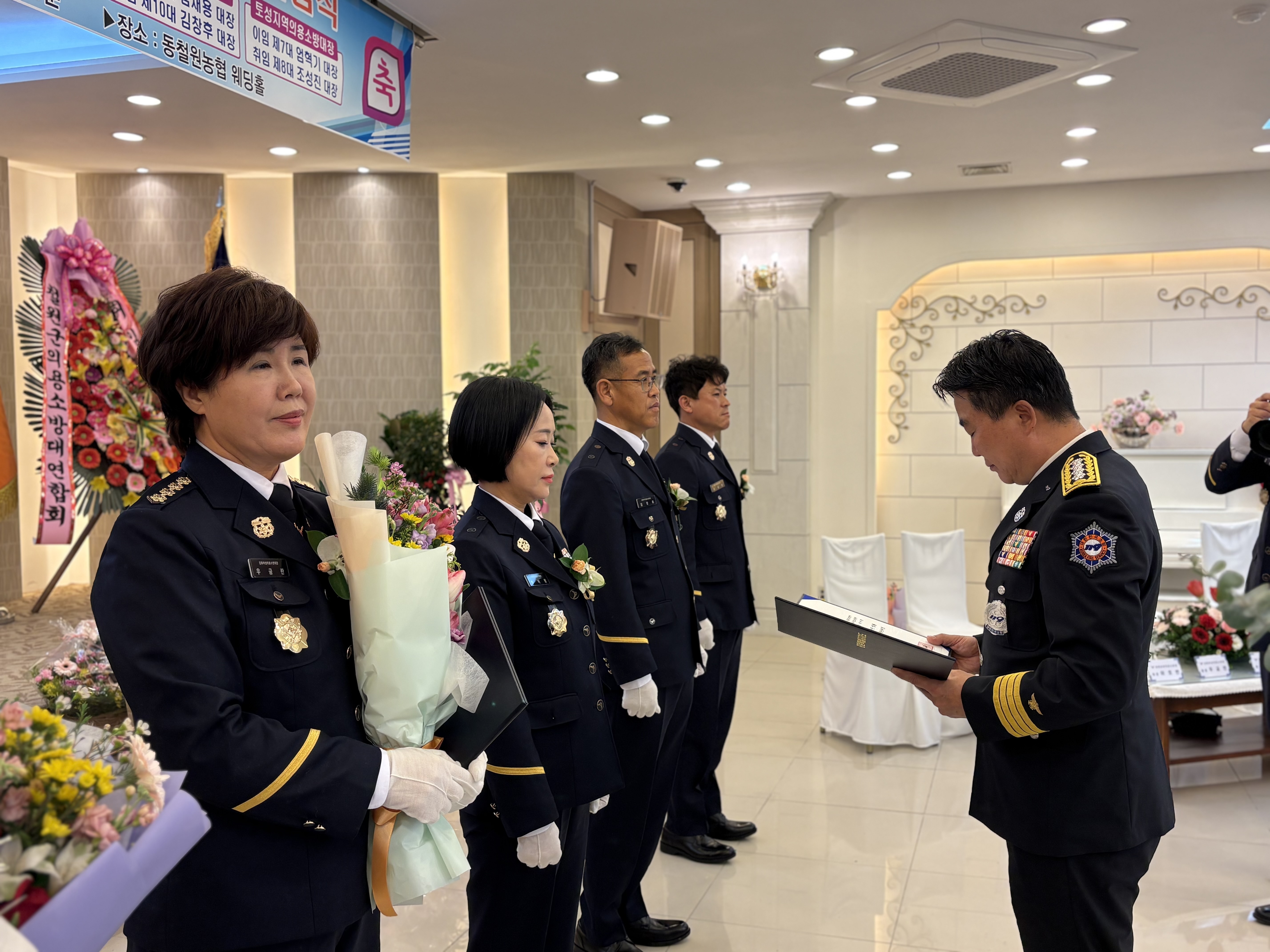 또한 이번에 새롭게 취임한 5명의 의용소방대장인 ▲동송여성대 박미정 ▲김화남성대 이호반 ▲김화여성대 우금란 ▲문혜지역대 김창후 ▲토성지역대 조성진 대장에게는 임명장이 수여됐다.