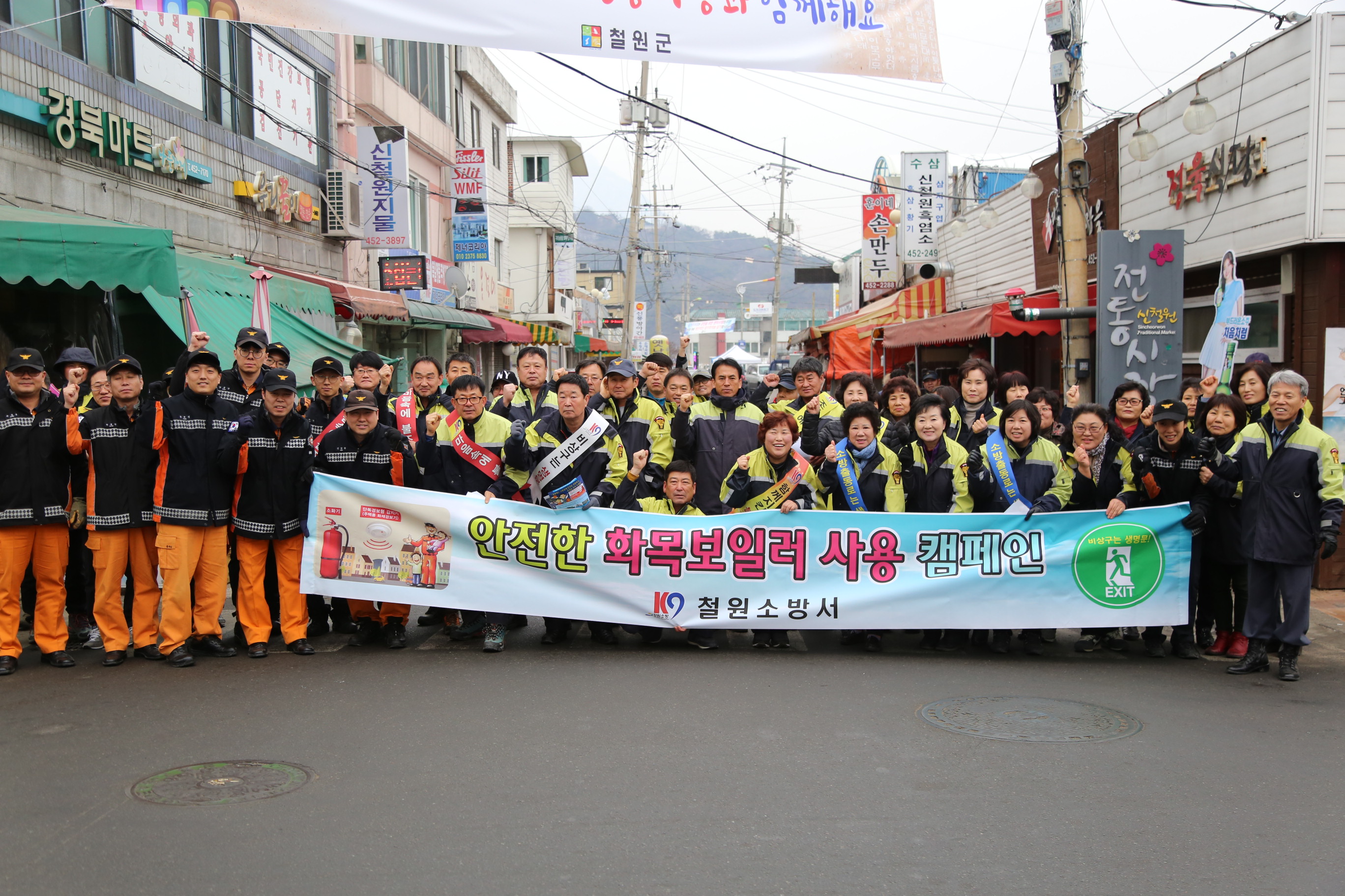 금일 26일 오후 2시 민족 최대의 명절인 설을 맞아 철원지역 3개시장(신철원,동송,와수)에서 소방공무원,의용소방대 및 단체,주민 등 300여명이 참여한 가운데 전통시장 화재예방 캠페인을 실시했다.