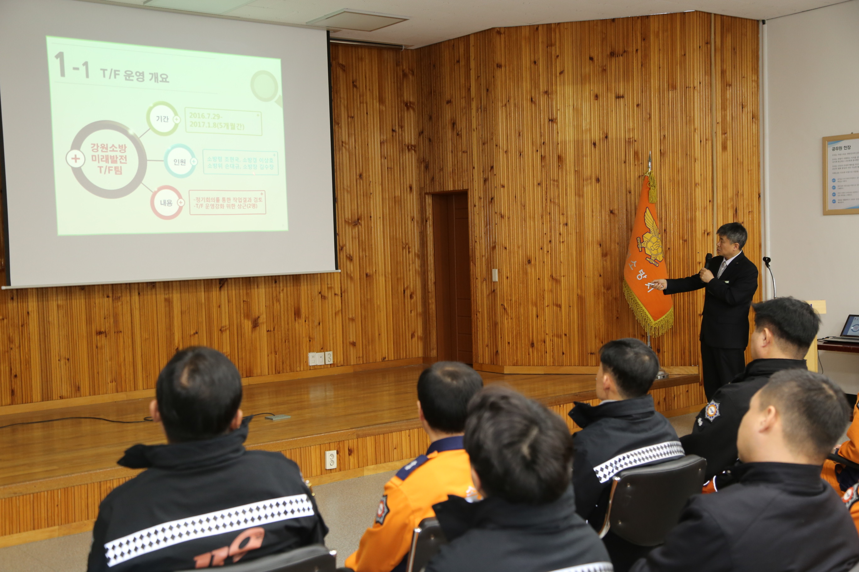 이번 설명회 주요내용은 ▲ 소방행정의 발전적·효율적 조직모델 구축 ▲ 소방공무원 복지시스템 강화 ▲ 과학적 재난대응 체계 구축 ▲ 미래형 예방·홍보 시스템 구현 등 강원소방 미래발전을 위해 현 운영 업무시스템의 효율성을 도모하는 한편 새로운 시책을 발굴하기 위해 개최됐다.
