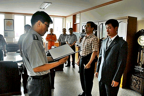 동해소방서(서장 이흥교)는 6일 오전 9시 소방서에서 직원 20명이 모인가운데 수난구조 민간인 유공자 최진한(남, 57세)씨, 조문기(남, 34세)씨 2명에게 표창장을 수여하고 생명을 건 이들의 공로를 치하하였다.