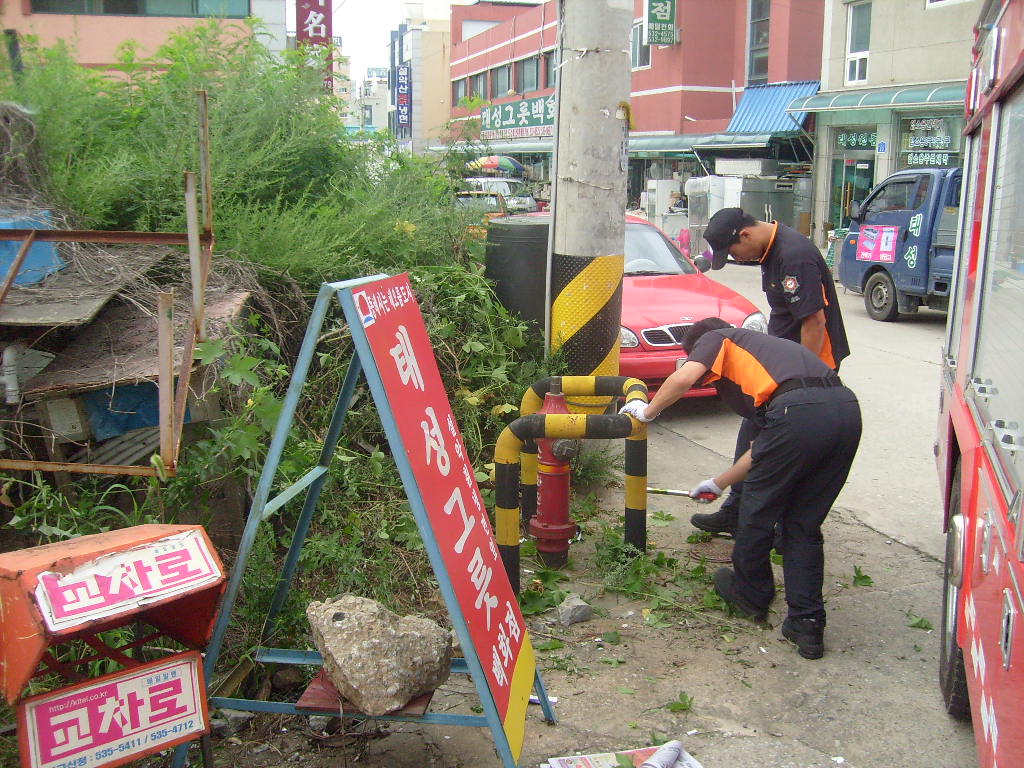 담당관내의 소화전 점검 및 주변정리를 하고 소방통로확보와 병행하였습니다.