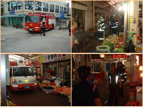 이날 훈련은 시장 내부 현황 및 취약지점을 확인하고 인근 소방용수시설 확인 및 관계인으로 하여금 피난대피 유도 및 소화기 등을 사용한 초기 소화훈련 등을 실시하여 인명피해가 발생하지 않도록 적극적인 소방활동을 당부하였습니다.