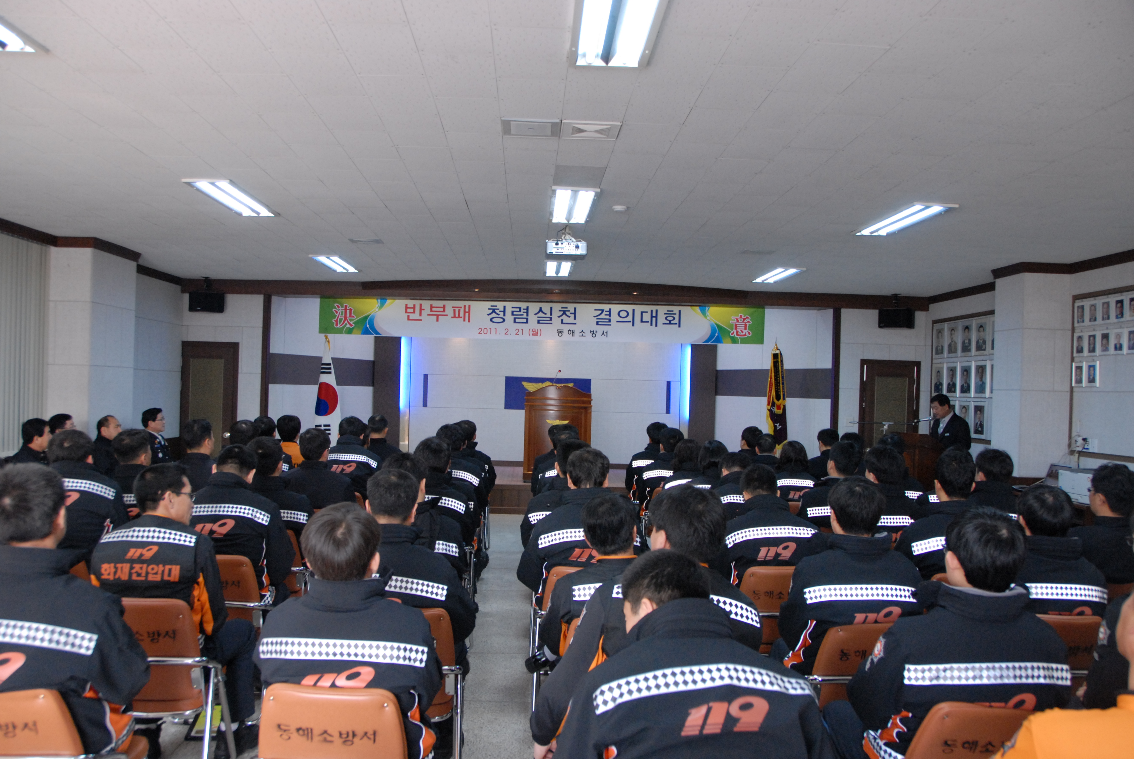 동해소방서(서장 김남숙)는 21일 오전 9시 본서 대회의실에서 소방공무원 120여명이 참석한 가운데 직장교육을 실시하고‘반부패 청렴다짐 결의대회’를 개최하였다.
