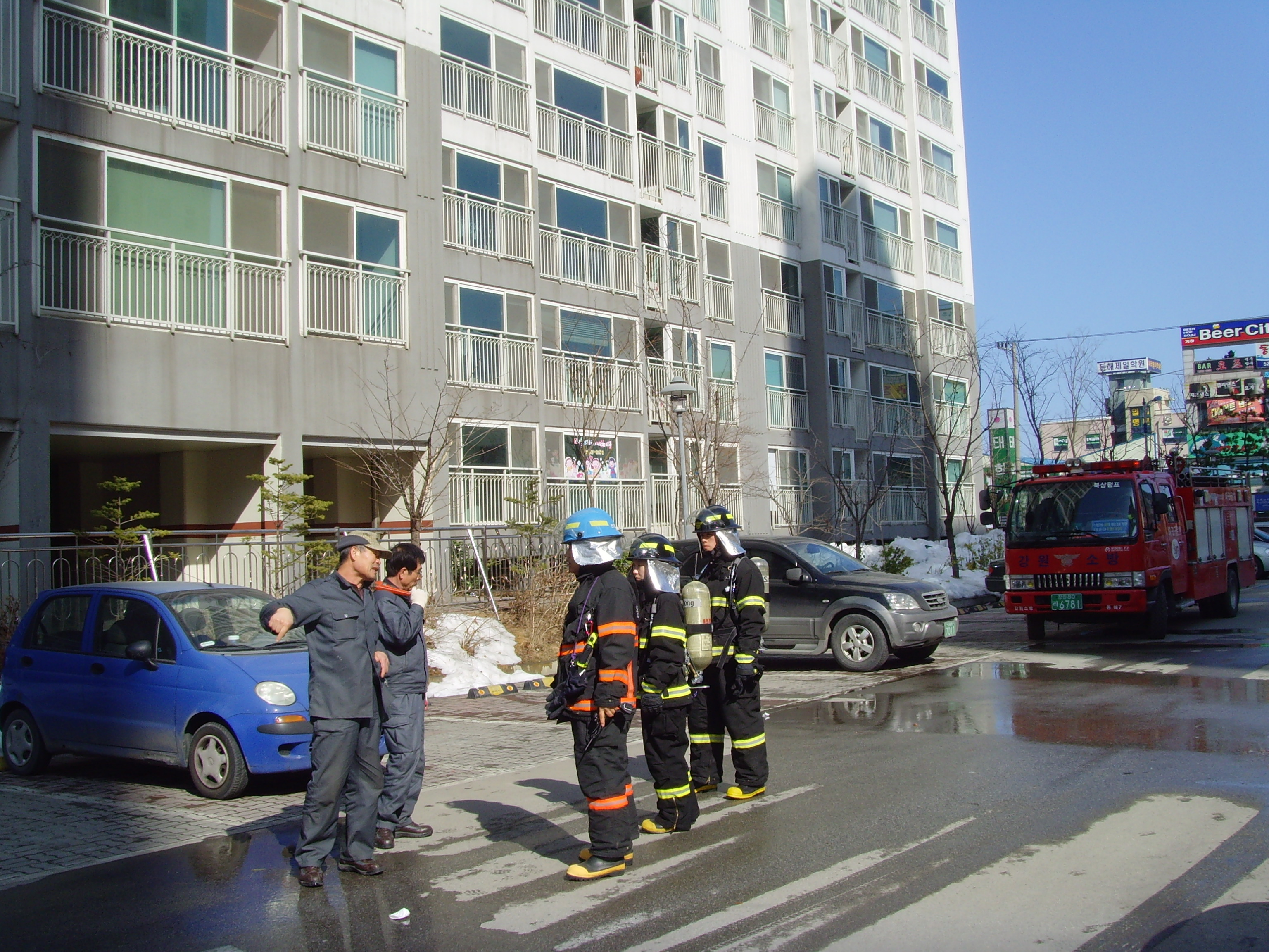 북삼센터 센터장 전찬호외 5명은 현지적응훈련차 코아루 아파트(동회동 효자남길9)에 소방훈련을 실시한바