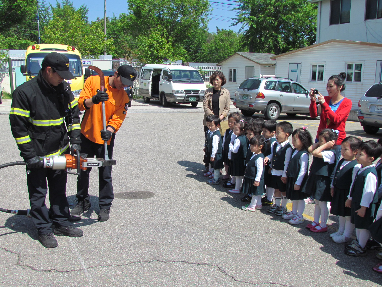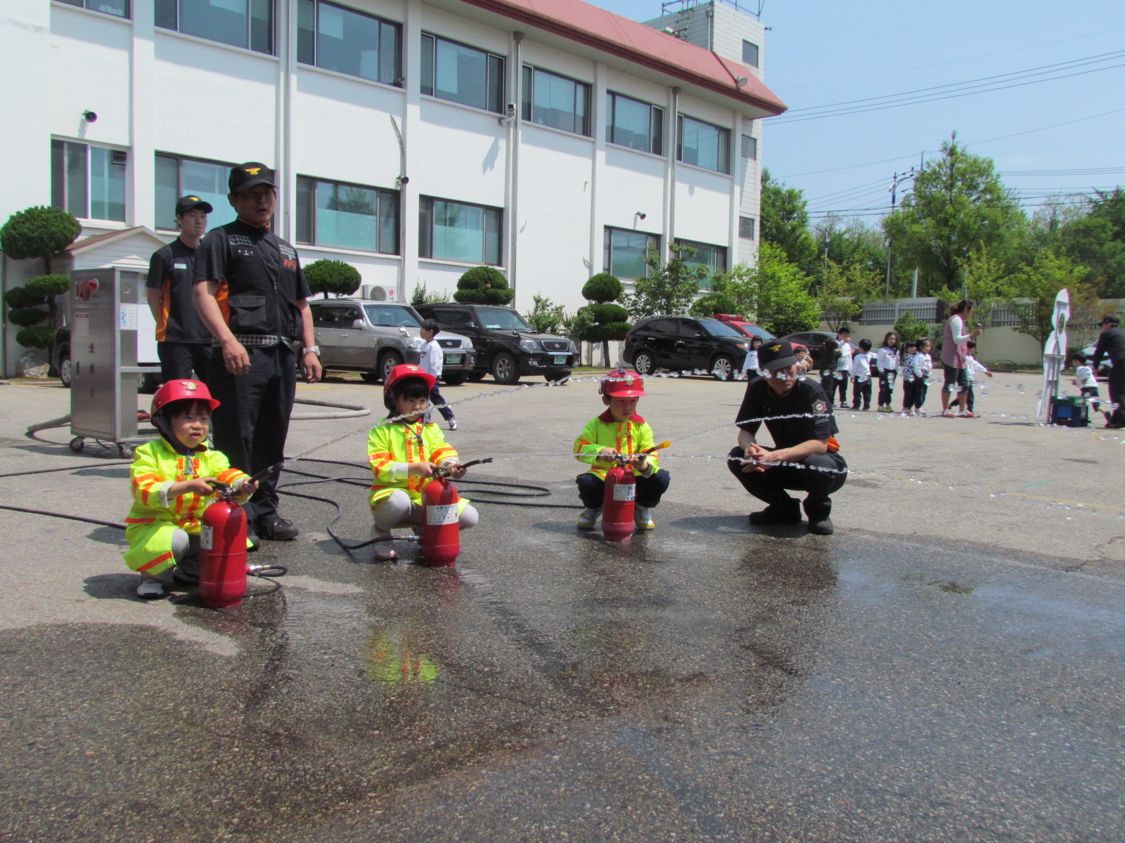 이번 체험교실에서는 물소화기를 이용한 소화기 사용법을 교육하였고, 구조장비 시연 관람과 '나도소방관' 포토존에서 기념촬영을 하였습니다.