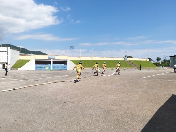 동해소방서(서장 김정희)는 지난 21일 오전 10시 관내 천곡119안전센터·종합운동장에서 제33회 전국소방기술경연대회 도 대표 선발전 대비 시연회를 실시했다고 밝혔다.