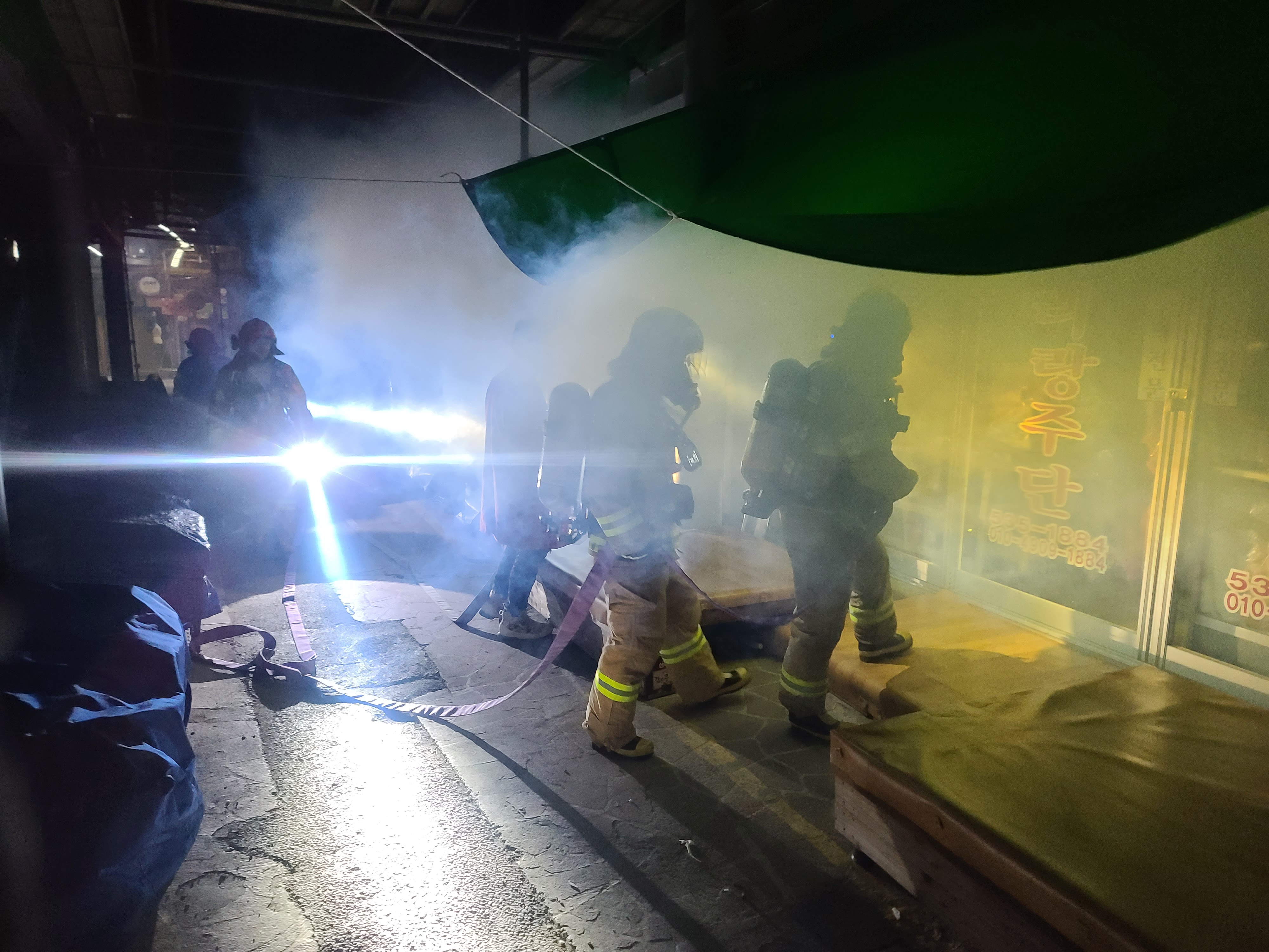 동해소방서, 현장소방대응력 강화를 위한 전통시장 야간 합동소방훈련
