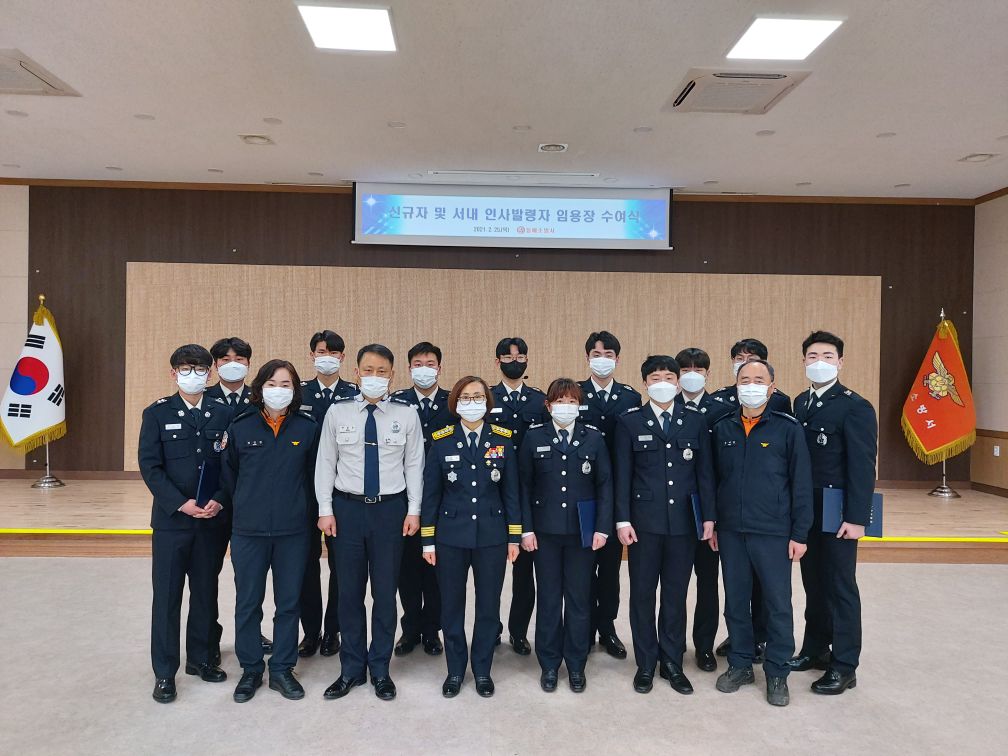 김정희 서장은 동해소방서의 새 가족이 된 걸 환영한다며