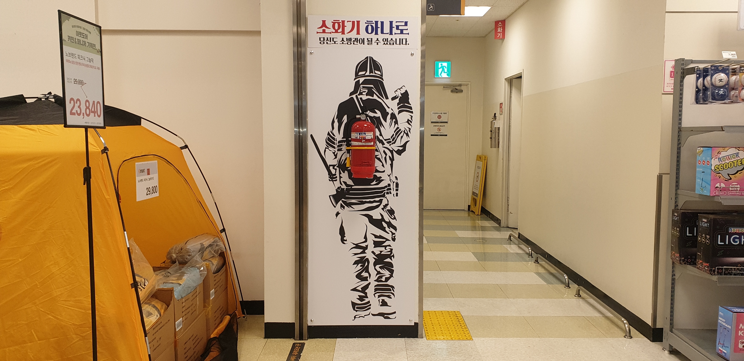 동해소방서(서장 김정희)가 그림을 추가하여 소화기를 쉽게 찾을 수 있도록 한 일러스트(어떤 의미나 내용을 시각적으로 전달하기 위하여 사용되는 삽화)를 다중이용시설인 이마트, 동해역에 설치하였다.