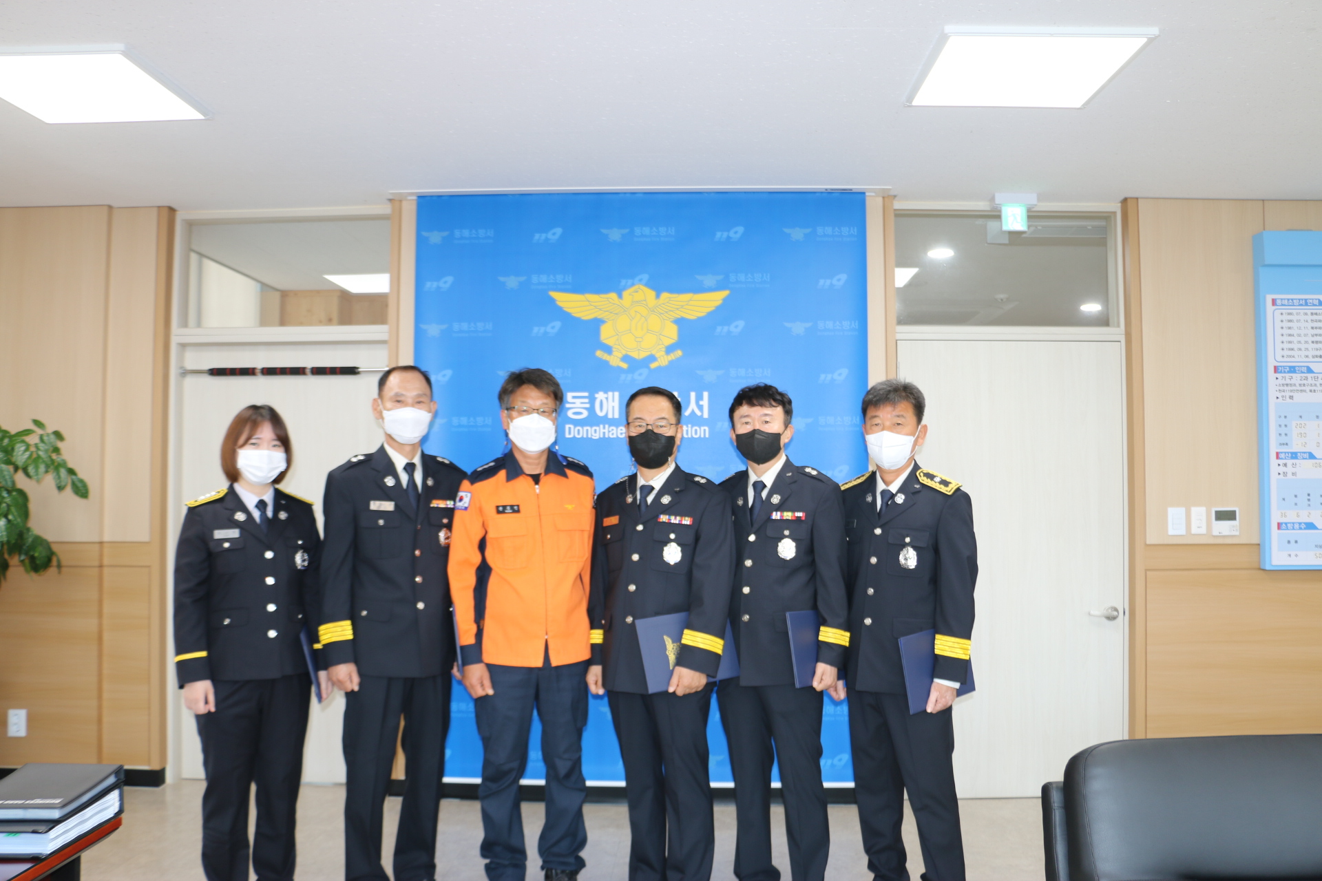 동해소방서(서장 이용길)는 금일 오전9시 서장실에서 5월 1일자 승진 및 서내 인사발령 임용식을 가졌다