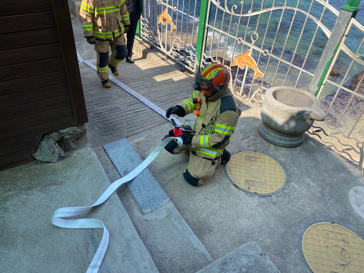 이번 훈련은 협소한 진입로로 인해 소방차 접근이 어려운 지역에서의 화재 대응 능력을 높이기 위해 약 270m의 장거리 호스 전개 및 방수를 통한 화재 진압 기술을 숙달하는데 중점을 두고 진행했다.