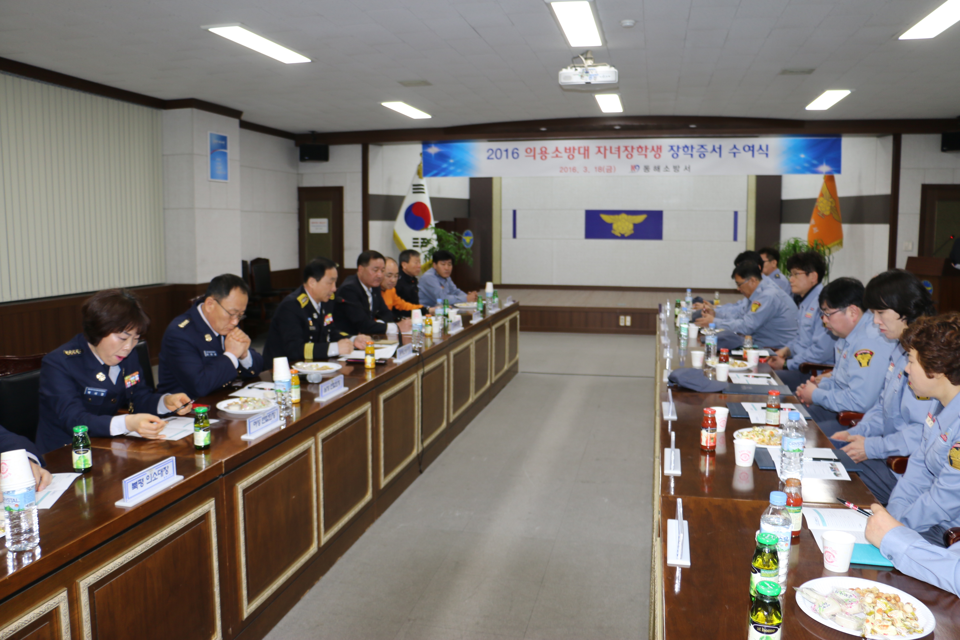 동해소방서(서장 김영조)는 18일(금) 오전10시 소방서 대회의실에서 의용소방대원 자녀들 중 학업성적이 우수하고 품행이 단정한 고등학생 7명, 대학생 4명 등 총 11명을 선발해 장학금 8백7십여만원을 지급하고 학부모에게 장학증서를 수여하고 대화의 시간을 가졌다.