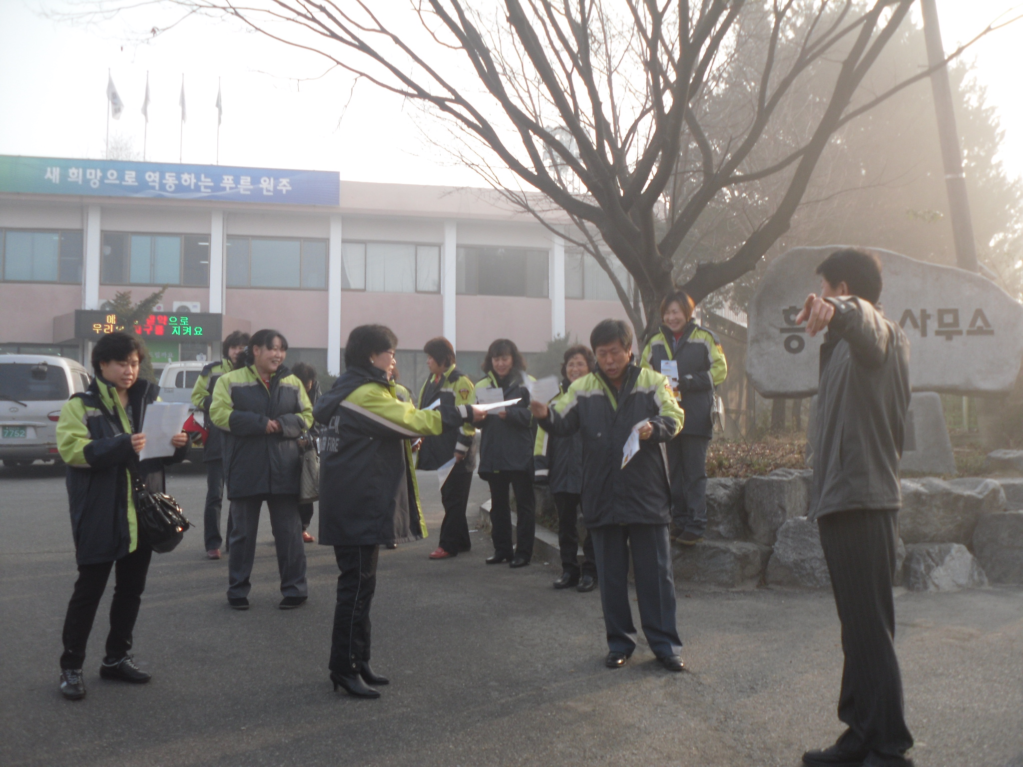 2011년 12월 12일(월) 09:30 ~ 11:00 흥업남녀의용소방대(대장 김성철외 17명, 오오석외 25명)는 흥업면사무소에 모여 산업계장(이용철)님으로부터 캠페인활동에 관해 간단히 설명을 들은 후 흥업면사거리를 중심으로 상가와 남원주농협 하나로마트, 주유소 등에서 시민들을 대상으로 불조심 전단지를 배포하며 캠페인 활동을 하였습니다.