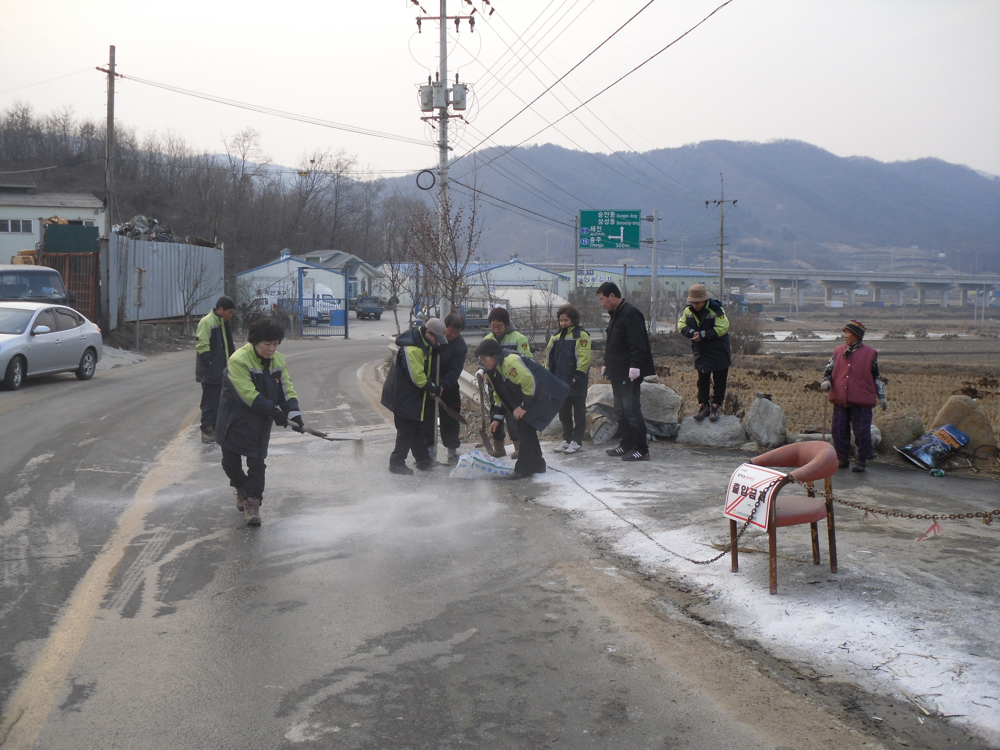 화재진압 후에 도착해서 무얼했냐?고 물으신다면......물이 쏟아진 주변의 도로가 얼음판으로 변해 2차 사고가 발생하지 않도록 도로에 마른 가루를 뿌려놓고 왔답니다.