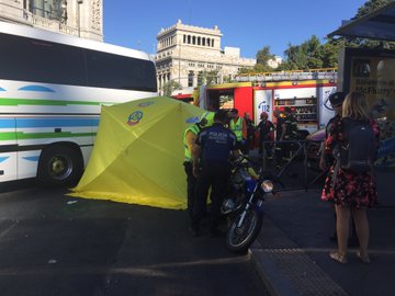 마드리드 Cibeles 광장에서 오토바이 운전자 버스와 충동하여 사망.