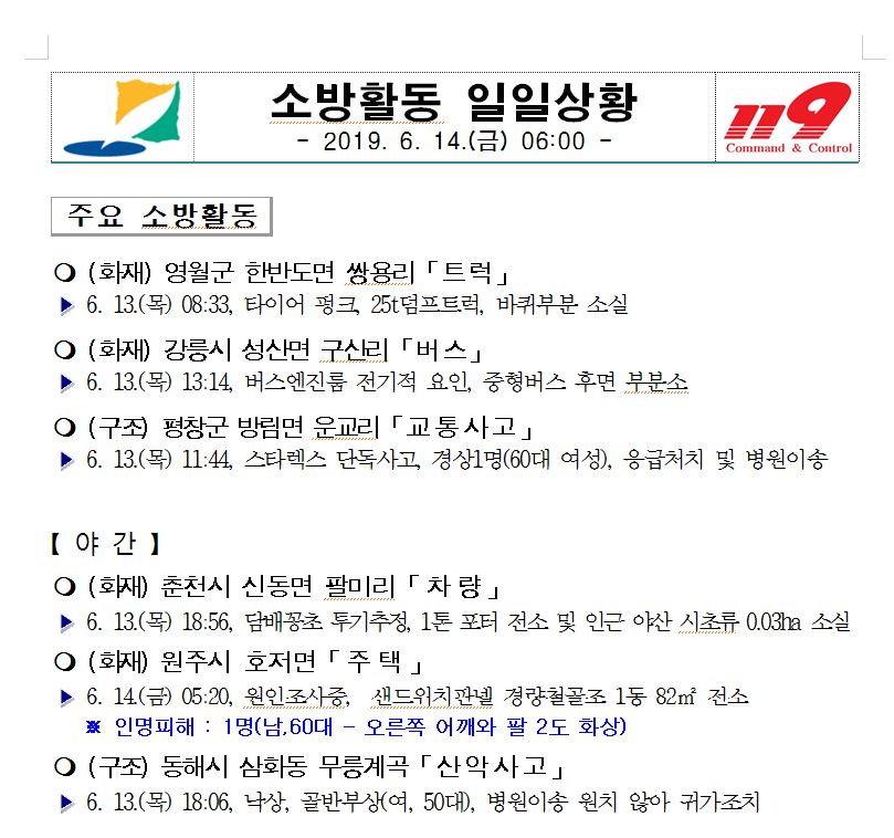 소방활동 일일상황(6. 14. 금) 06:00