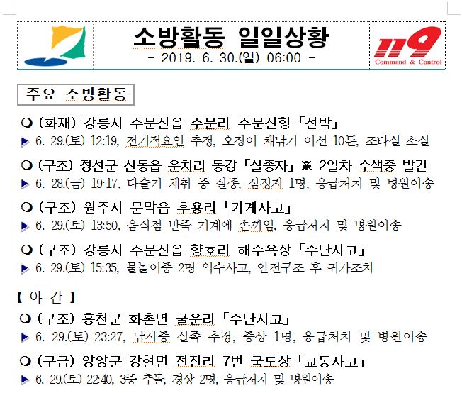 소방활동 일일상황(6. 30. 일) 06:00