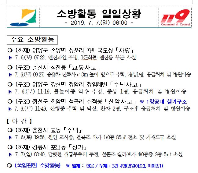 소방활동 일일상황(7. 7. 일) 06:00