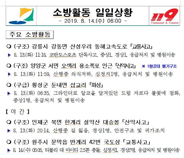 소방활동 일일상황(8. 14. 수) 06:00
