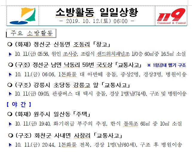 소방활동 일일상황(10.12. 토) 06:00