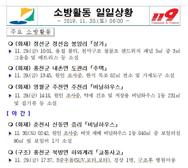 소방활동 일일상황 (11. 30. 토) 06:00