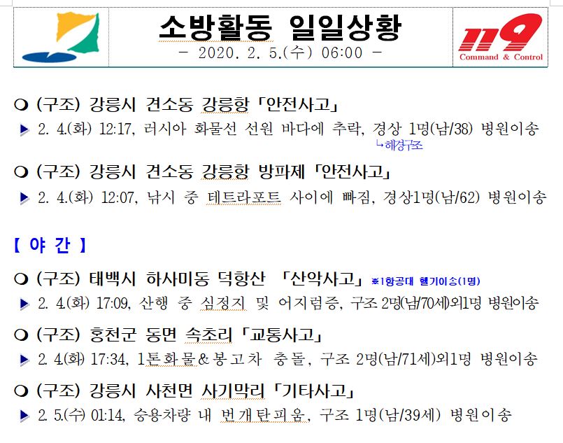 소방활동 일일상황 (2. 5. 화) 06:00