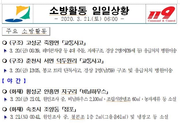 소방활동 일일상황 (3. 21. 토) 06:00