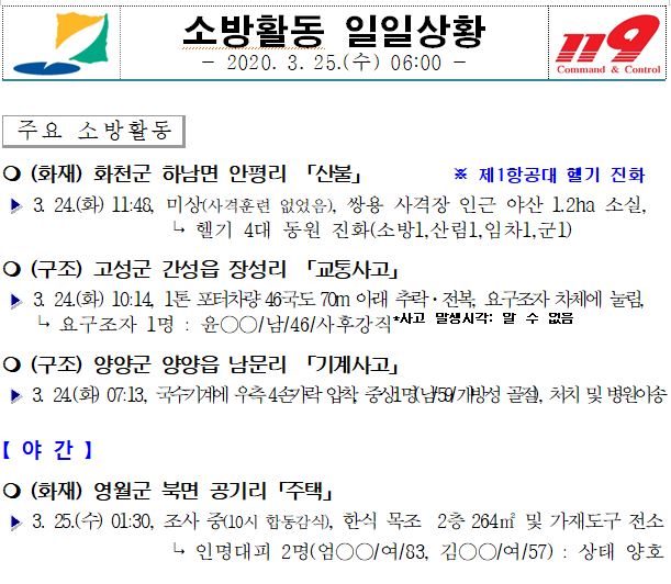소방활동 일일상황 (3. 25. 수) 06:00