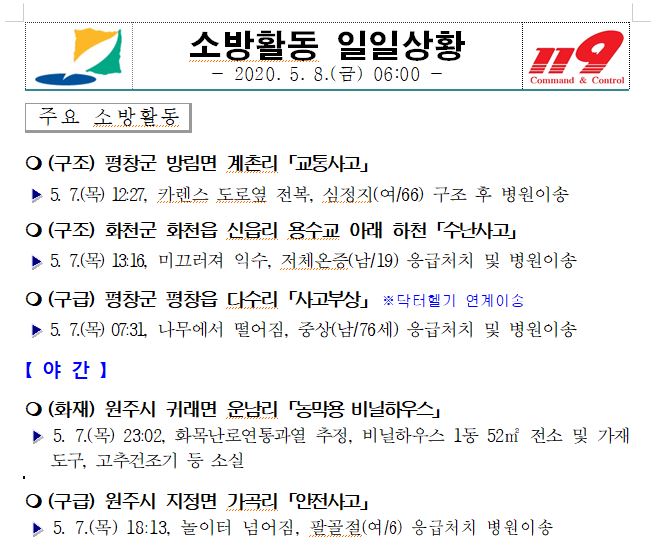 소방활동 일일상황 (5. 8. 금) 06:00